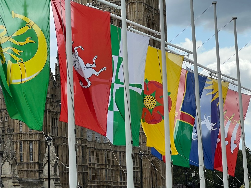 In a show of national support for this occasion, the 53 registered flags of the historic counties of Great Britain were flown, with Government support, in Parliament Square alongside the Union Flag.