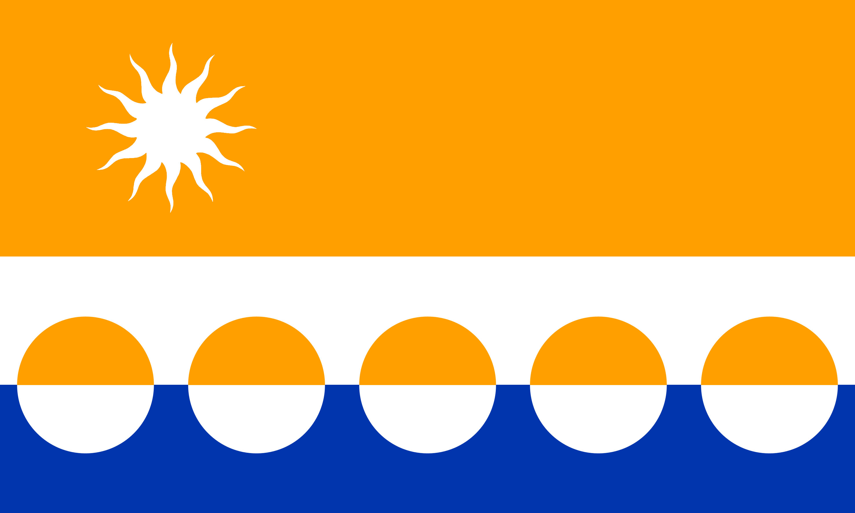The white horizontal band recalls the bridges that are emblematic of this narrow county with rivers running through it and along its borders; from ancient in-land river crossings to the mighty industrial viaducts along the coast.