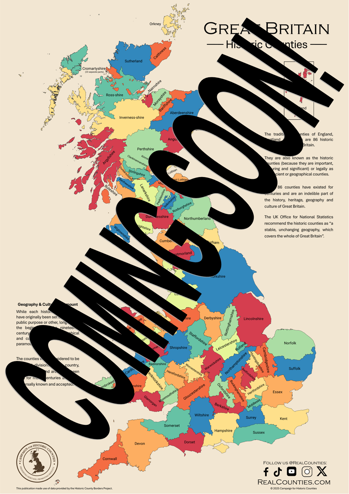 Showcasing the true counties of England, Scotland, Wales & Northern Ireland, this brand-new 2025 map from the Campaign for Historic Counties is the definitive guide to Britain’s timeless geography.